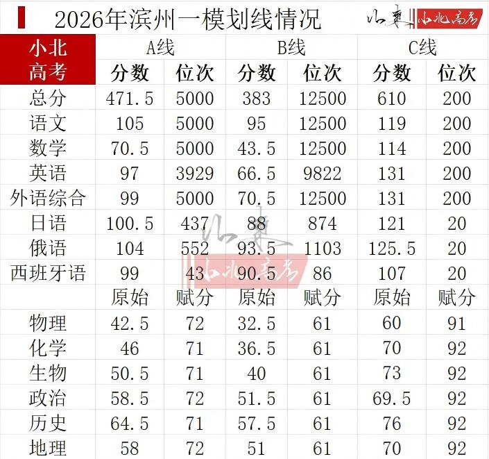 10.2026年滨州一模分数线