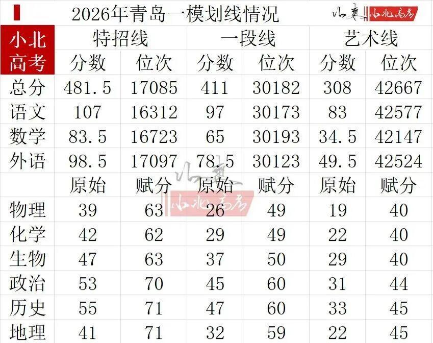 13.2026年青岛一模分数线