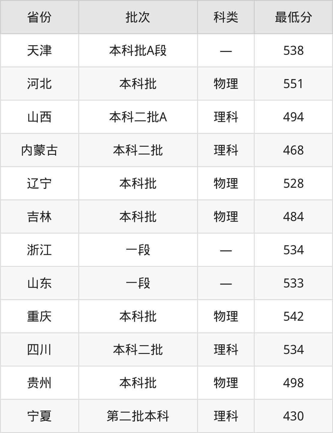 内蒙古:理科最低468分