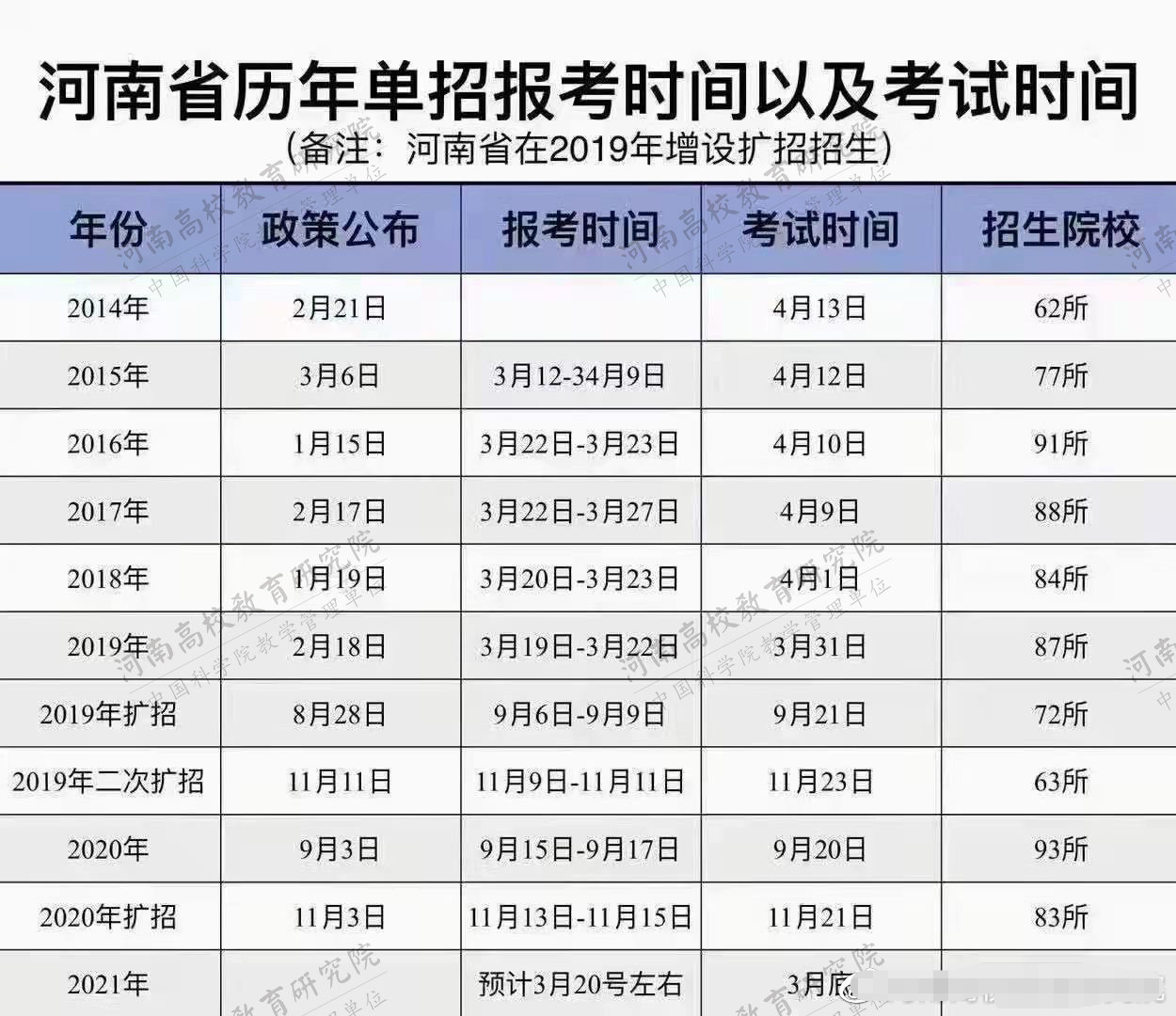 目前为止河南还没正式公布考试时间,建议各位同学持续关注本文,本文会在第一时间更新相关消息。不过根据河南省历年来的单招考试时间,可以估计2021年考试时间应该是3月底。