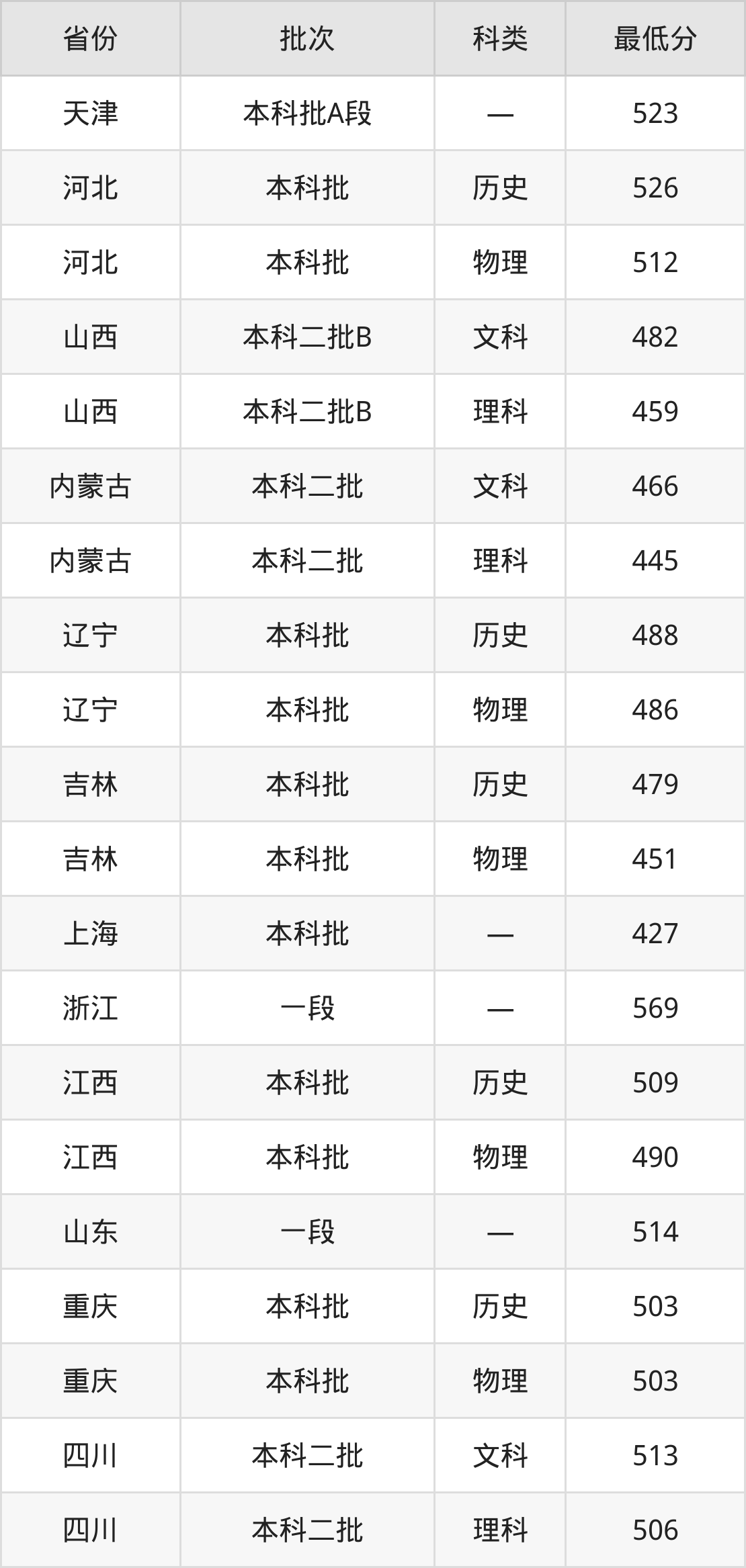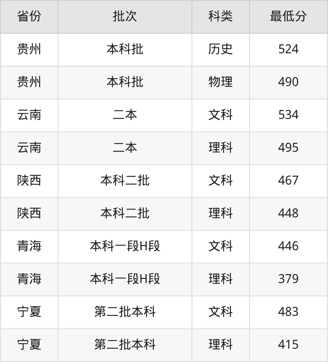 新疆政法学院法学专业录取分数线从379分到569分不等,在部分地区的最低分数线如下: