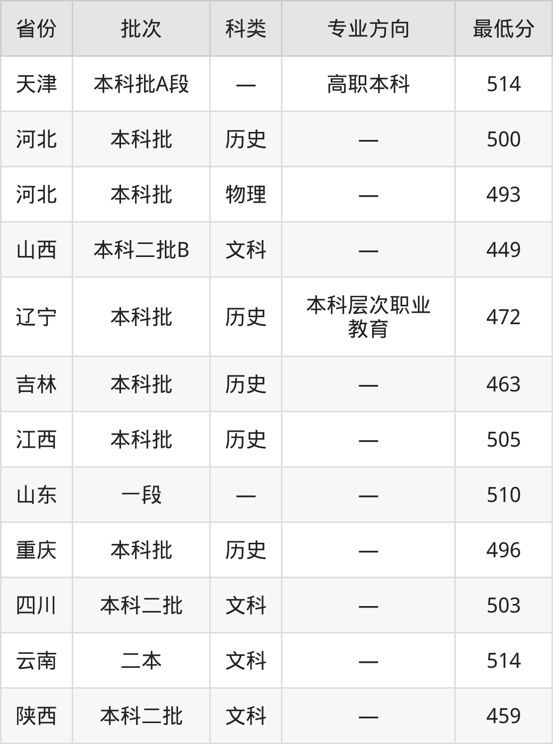 河北科技工程职业技术大学大数据与财务管理专业录取分数线从449分到514分不等,在部分地区的最低分数线如下: