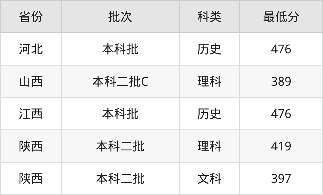 西安科技大学高新学院英语专业录取分数线从389分到476分不等,最低分数线如下: