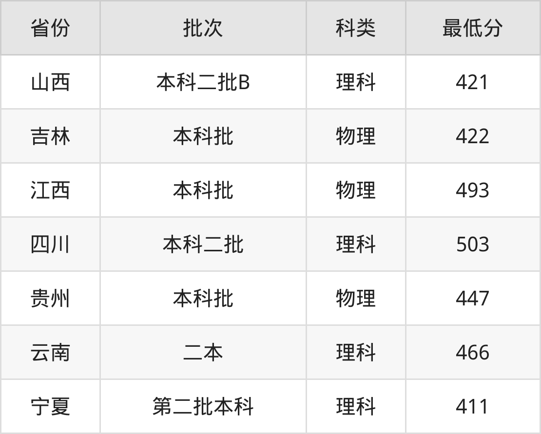 龙岩学院应用化学专业在全国各省最低录取分数线为411分(宁夏理科),除此之外,在其余地区的最低分为四川理科503分、贵州物理类447分、云南理科466分、山西理科421分等,以上数据均为2024年数据,供2025年高考生参考。