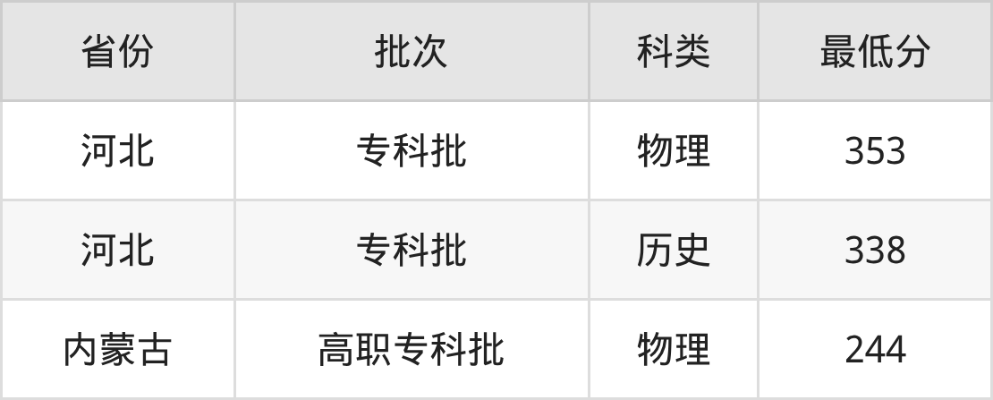 江西新能源科技职业学院新能源装备技术专业在全国各省最低录取分数线为244分(内蒙古物理类),除此之外,在其余地区的最低分为河北历史类338分,以上数据均为2025年数据,供2026年高考生参考。