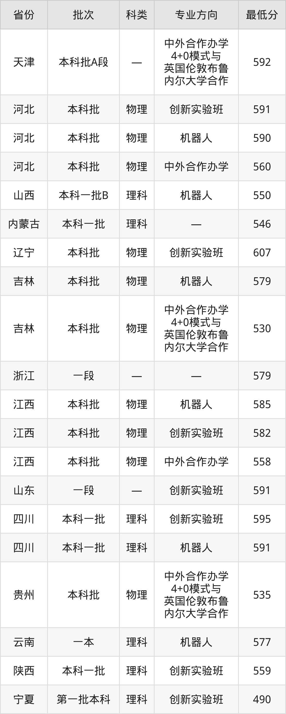 机械设计制造及其自动化(机器人)、机械设计制造及其自动化(创新实验班)4600元/年、机械设计制造及其自动化(中外合作办学)65000元/年。