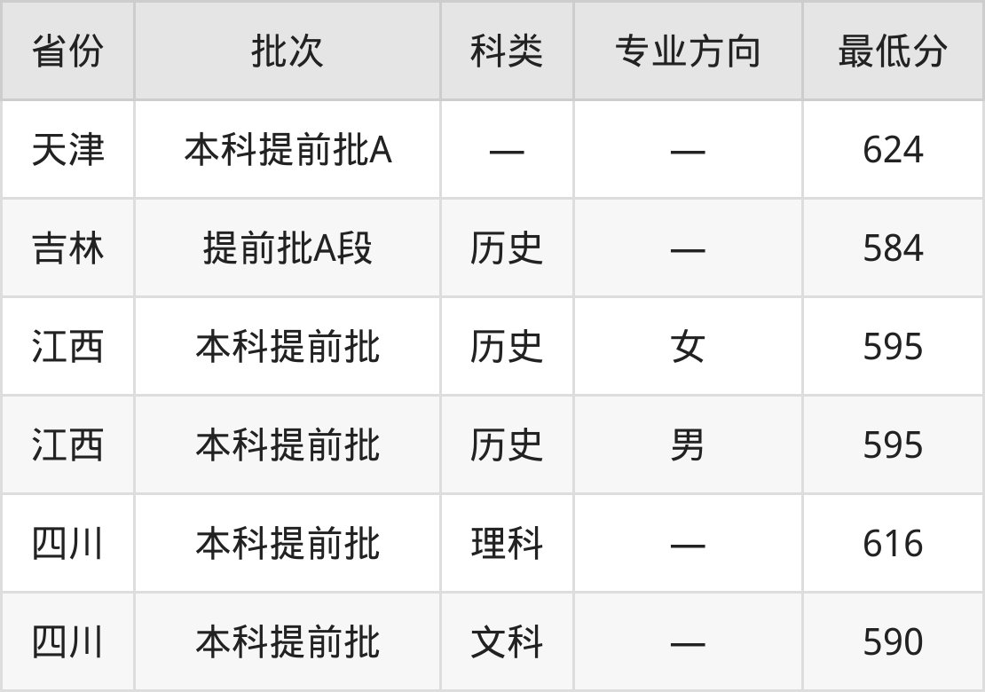 国际关系学院国际政治专业在全国各省最低录取分数线为584分(吉林历史类),除此之外,在其余地区的最低分为天津624分、江西历史类595分、四川文科590分,以上数据均为2024年数据,供2025年高考生参考。
