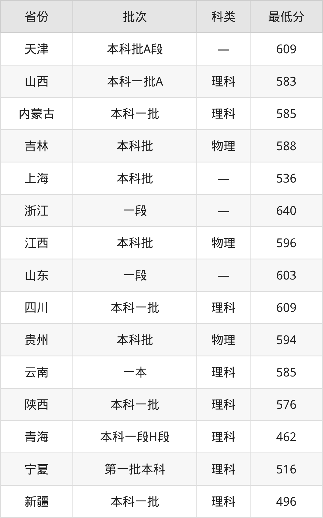 江苏大学计算机科学与技术专业在全国各省最低录取分数线为462分(青海理科),除此之外,在其余地区的最低分为上海536分、浙江640分、江西物理类596分、山东603分等,以上数据均为2024年数据,供2025年高考生参考。