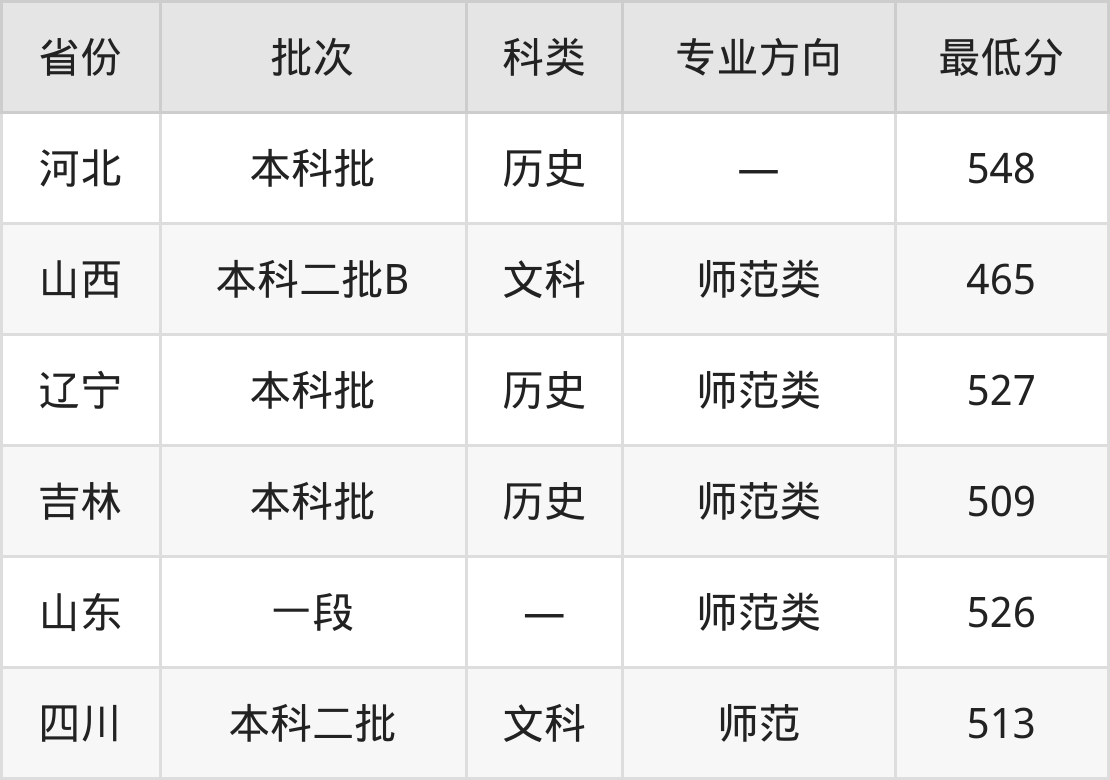 安阳师范学院思想政治教育专业在全国各省最低录取分数线为465分(山西文科),除此之外,在其余地区的最低分为河北历史类548分、辽宁历史类527分、吉林历史类509分、山东526分等,以上数据均为2024年数据,供2025年高考生参考。