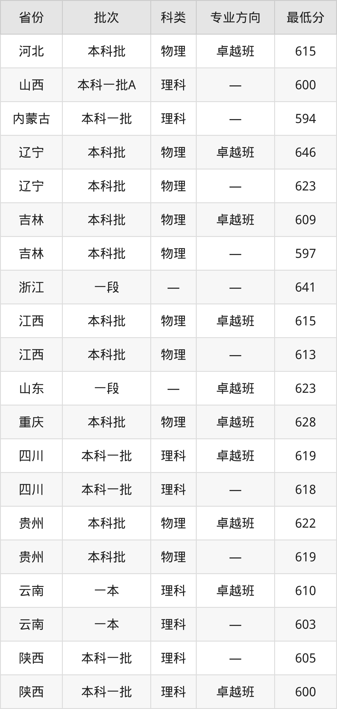 深圳大学临床医学专业录取分数线从532分到646分不等,在部分地区的最低分数线如下: