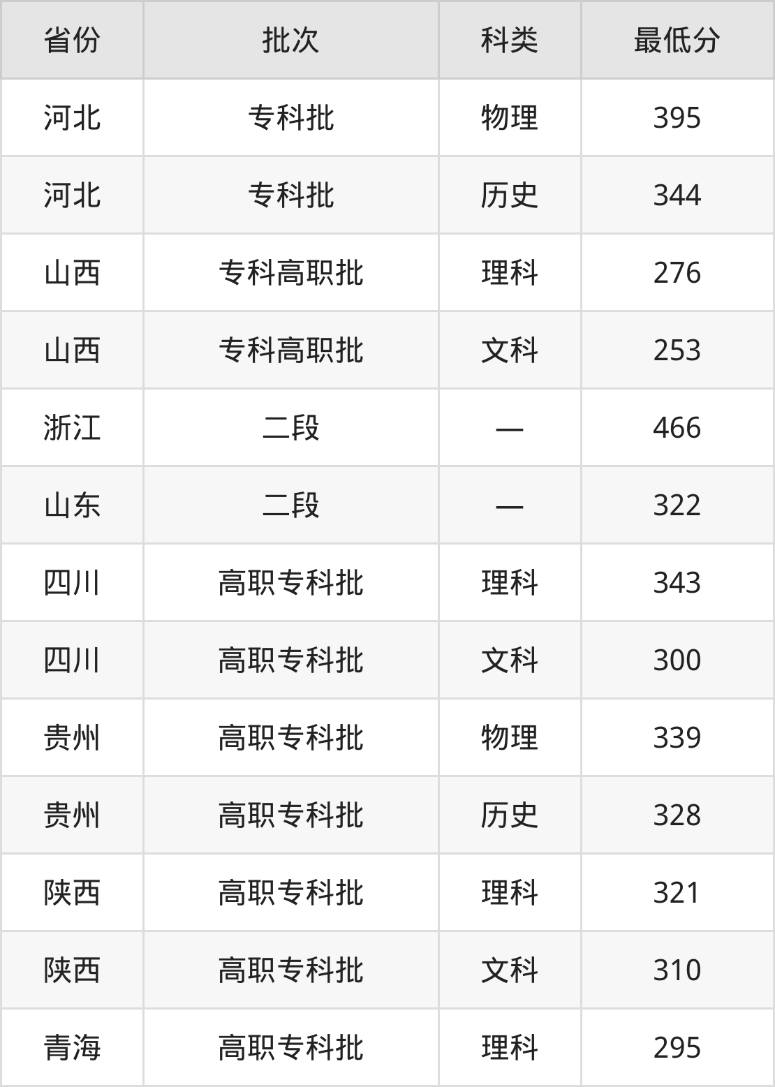 山西同文职业技术学院口腔医学技术专业录取分数线从253分到466分不等,最低分数线如下: