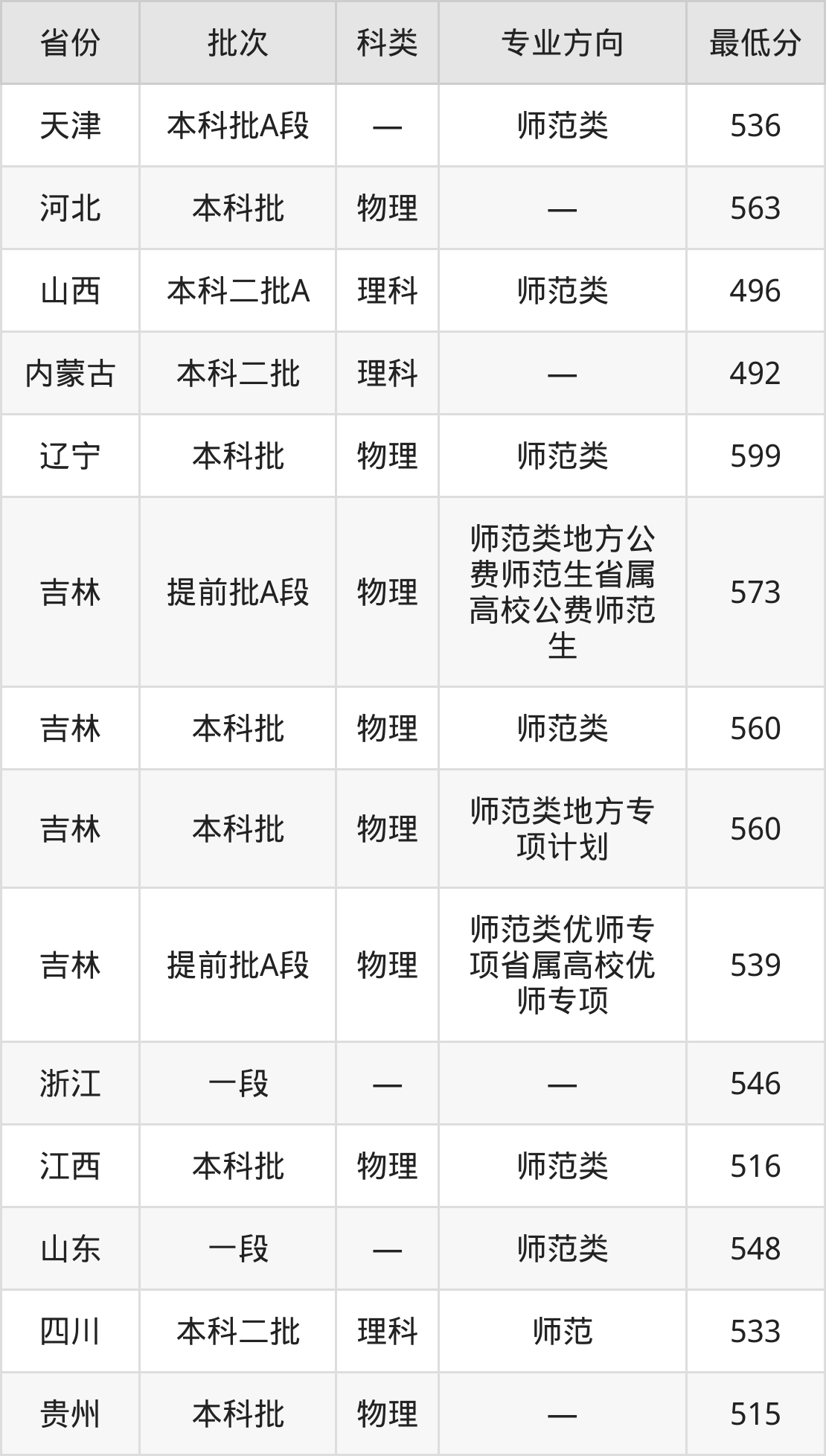 吉林师范大学数学与应用数学专业在全国各省录取分数线: