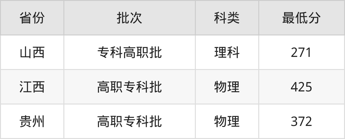 广东理工职业学院机电一体化技术专业在全国各省录取分数线: