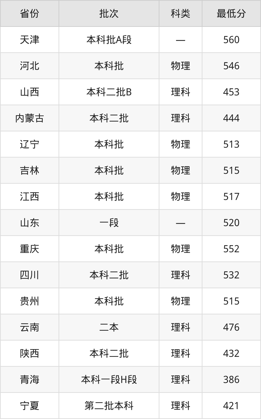 长治医学院医学影像技术专业录取分数线从386分到560分不等,在部分地区的最低分数线如下: