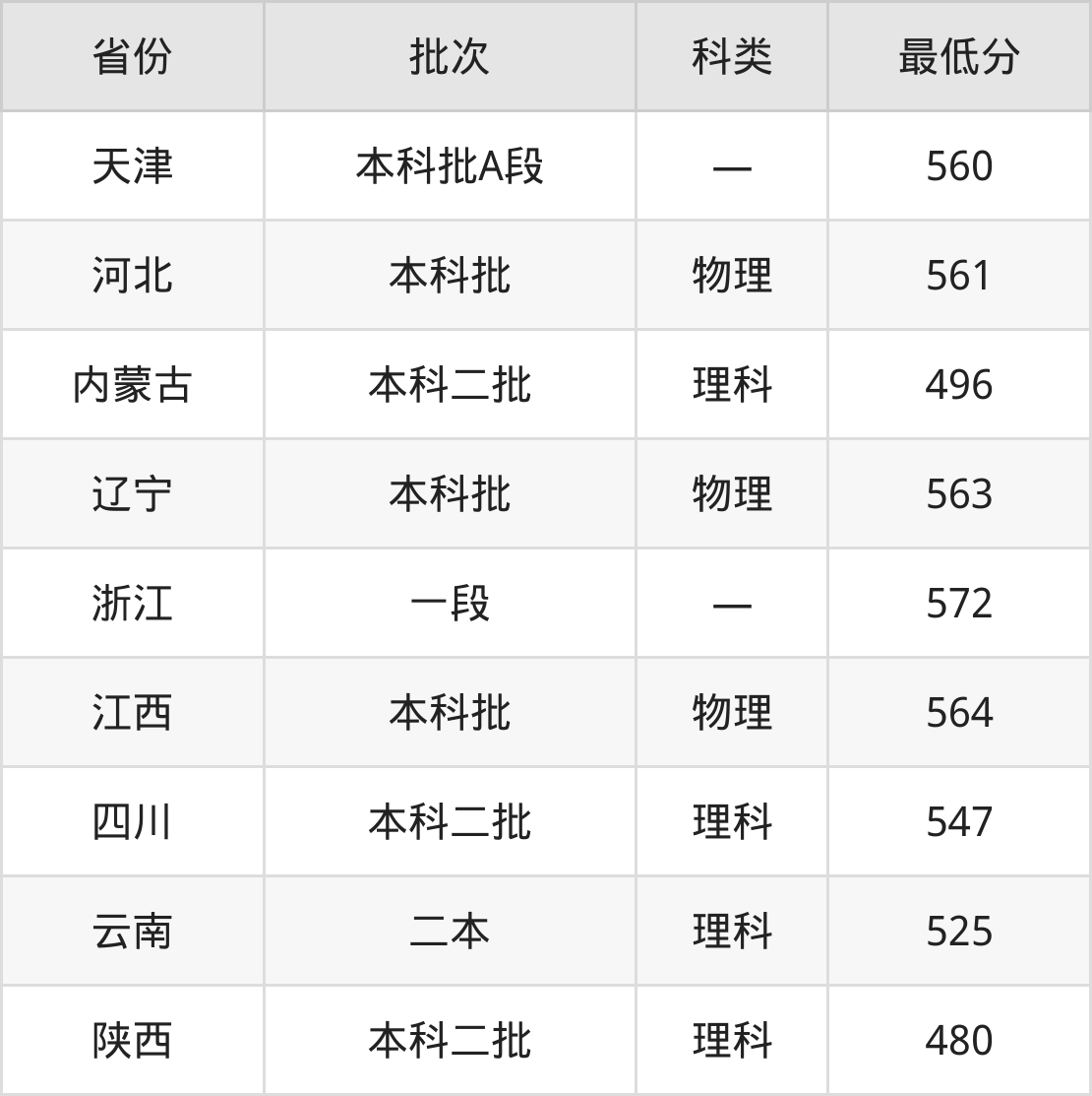 浙江科技大学自动化专业在全国各省最低录取分数线为480分(陕西理科),除此之外,在其余地区的最低分为天津560分、江西物理类564分、河北物理类561分、内蒙古理科496分等,以上数据均为2024年数据,供2025年高考生参考。
