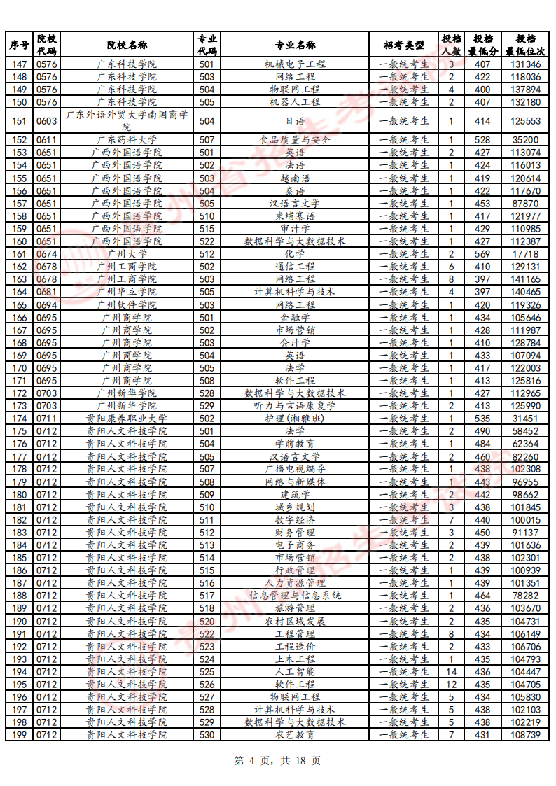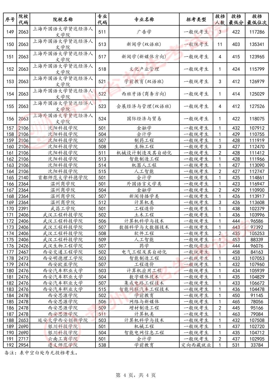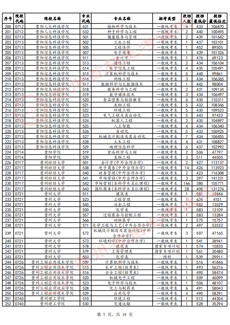 贵州本科批征集志愿学校名单及分数线如下图