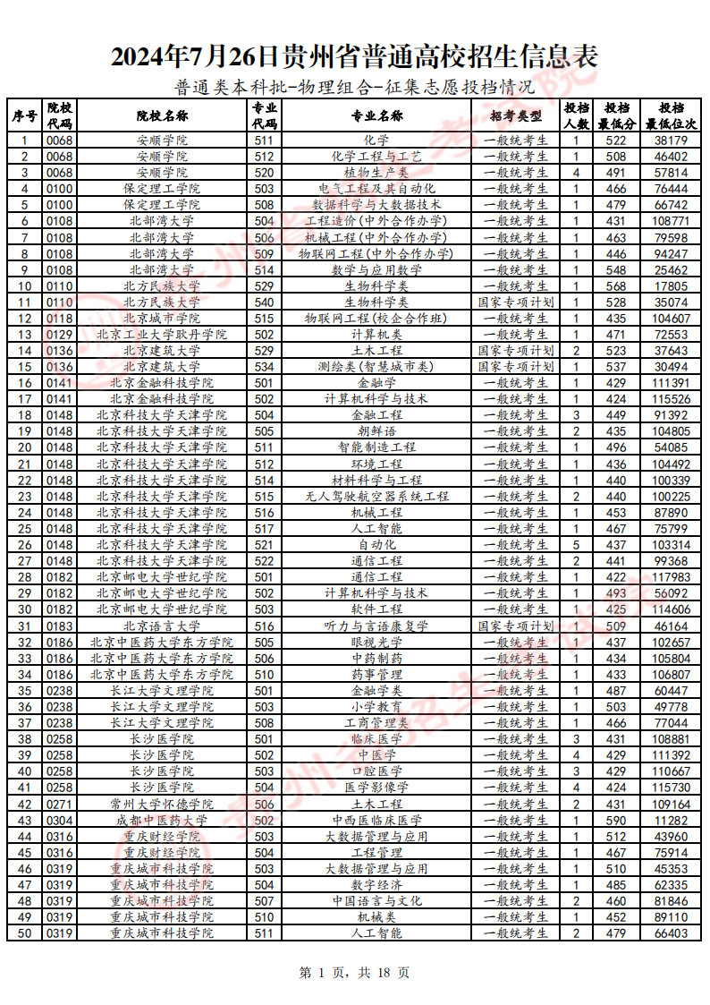 以下为2024年贵州本科批征集志愿相关情况,各位可以在圆梦志愿查看全国大学在贵州省的高考录取情况。