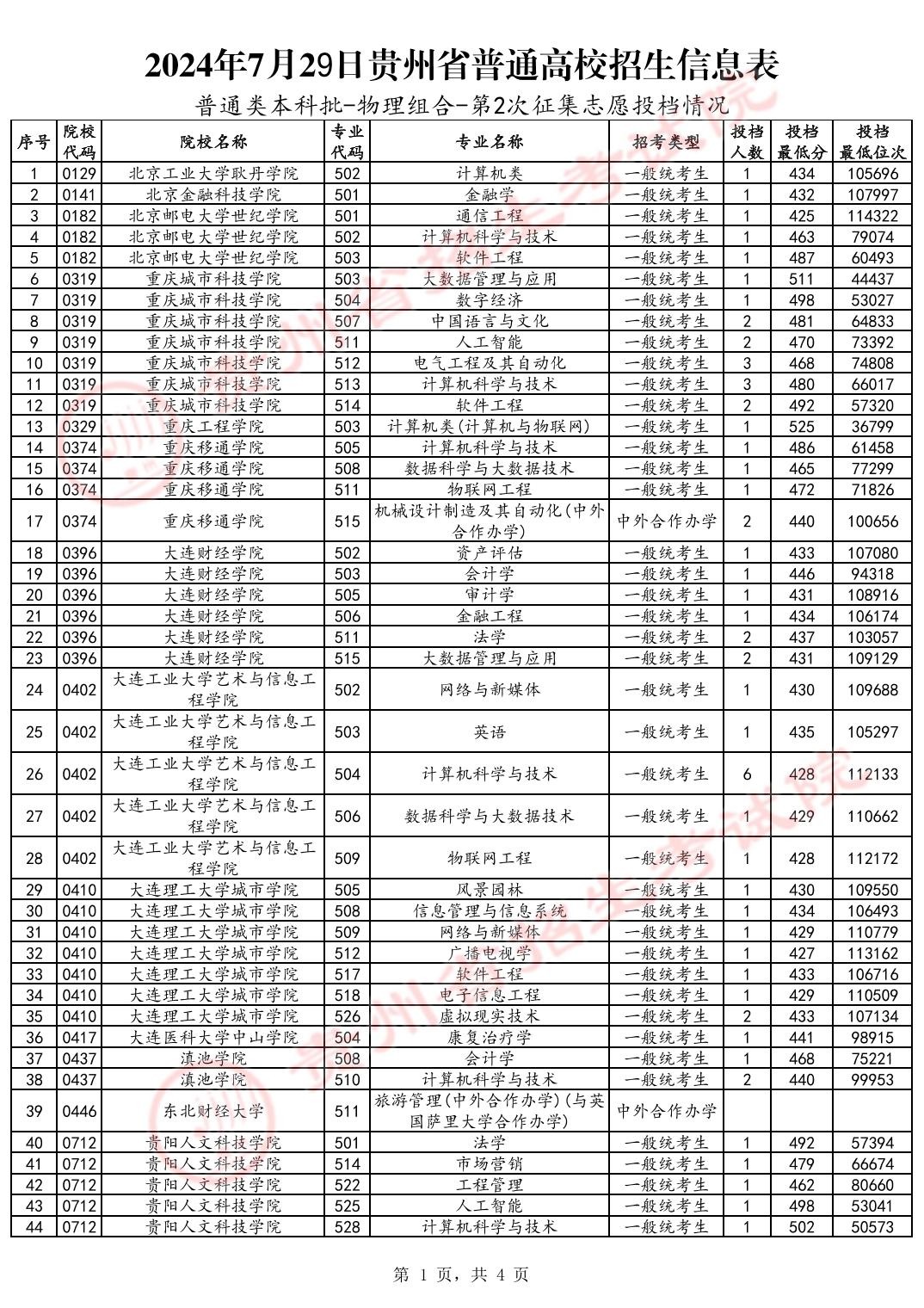 以下为2024年贵州本科批第2次征集志愿相关情况,各位可以在圆梦志愿查看全国大学在贵州省的高考录取情况。
