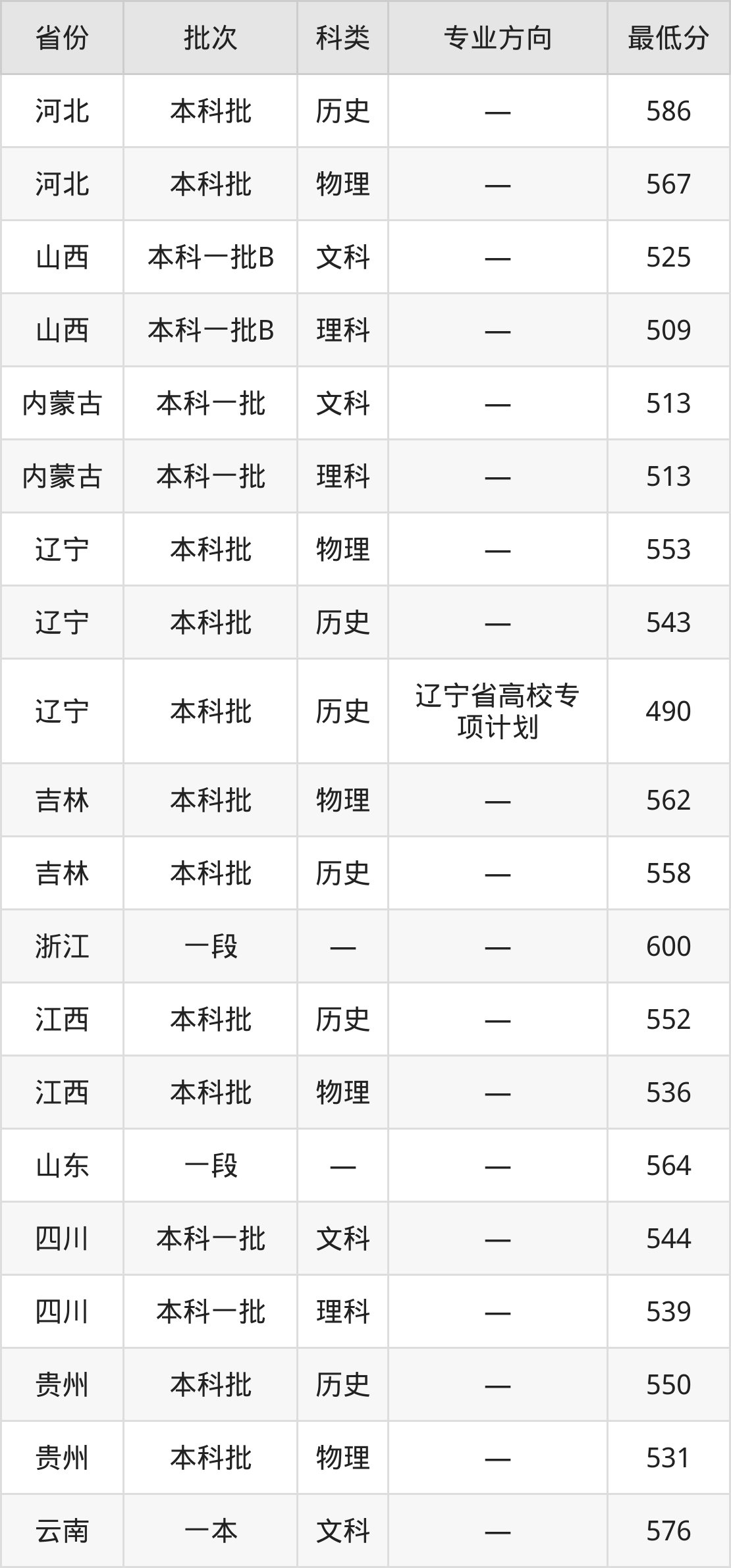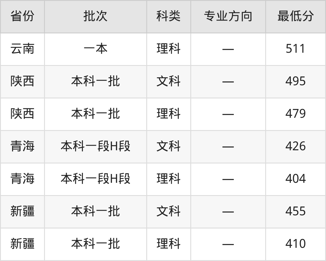 大连外国语大学英语专业录取分数线从404分到600分不等,在部分地区的最低分数线如下: