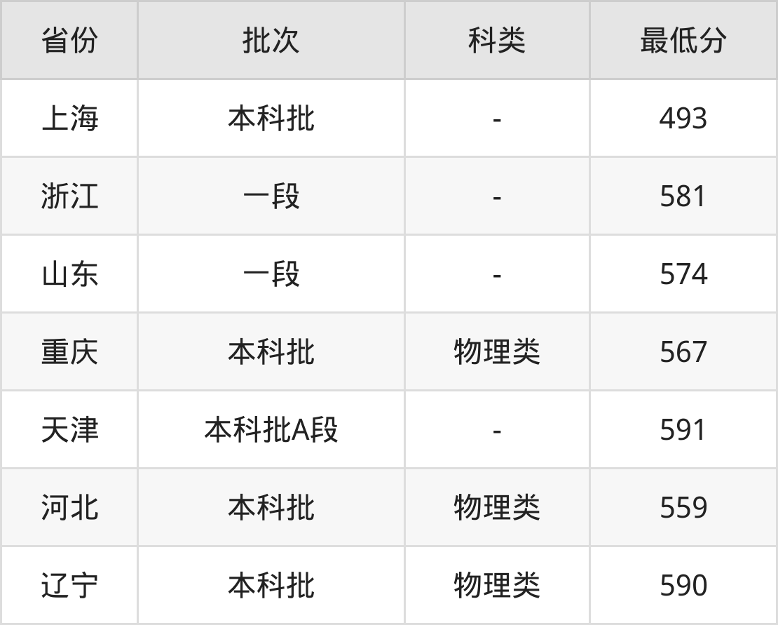 | 批次 | 最低分 | 位次 |
