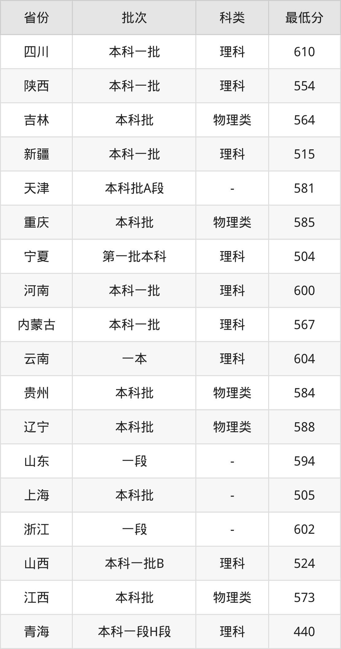 2024年重庆医科大学医学检验技术专业在市外招生分数线各不相同,具体如下:
