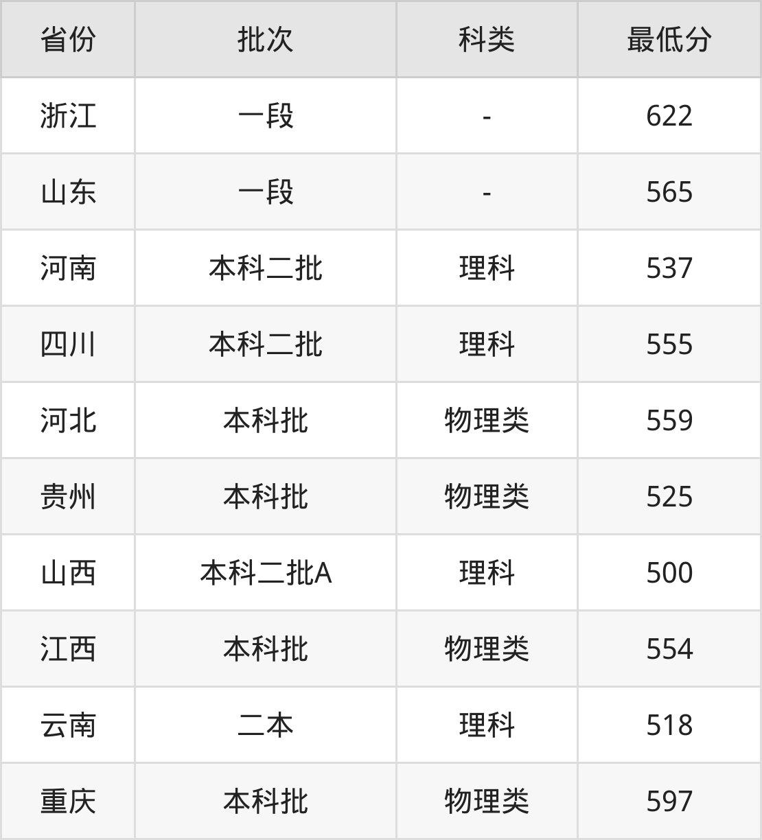 3、云南省(二本)