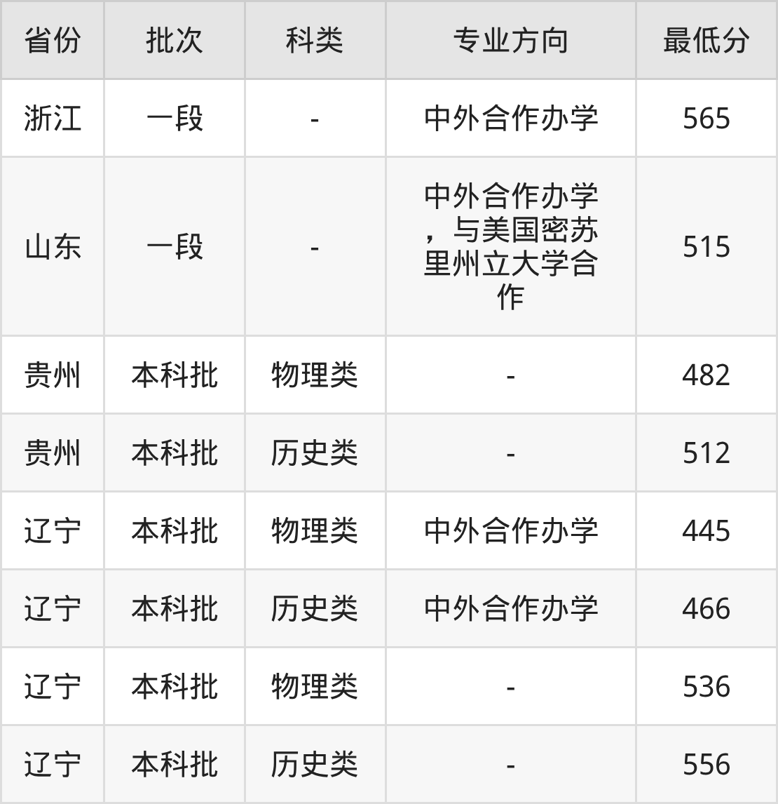 515分(中外合作办学,与美国密苏里州立大学合作、位次151801名);