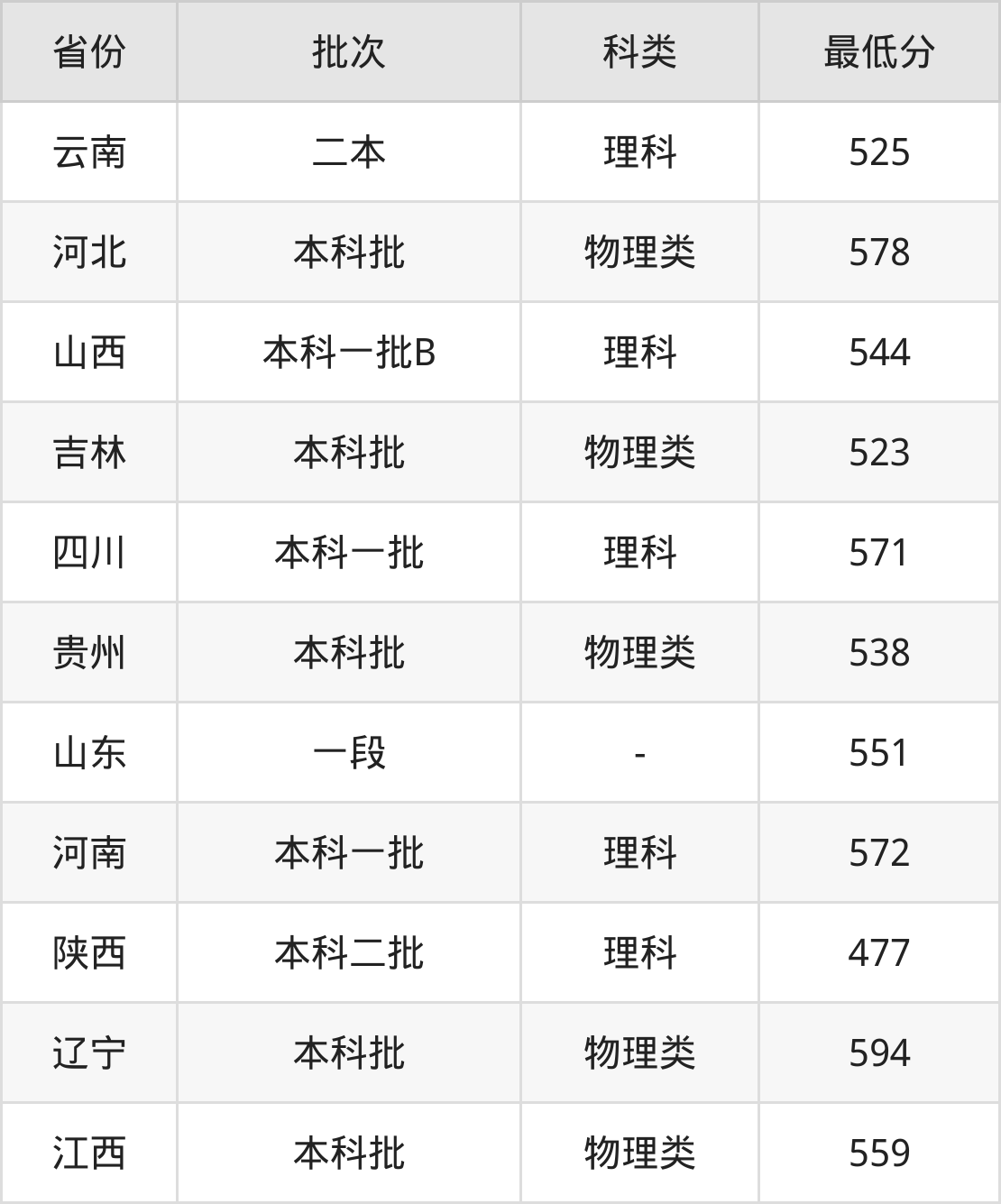 | 物理+化学 | 安徽、贵州、河北、辽 宁、黑龙江、湖北、广 西、海南、吉林、江西 、山东 |