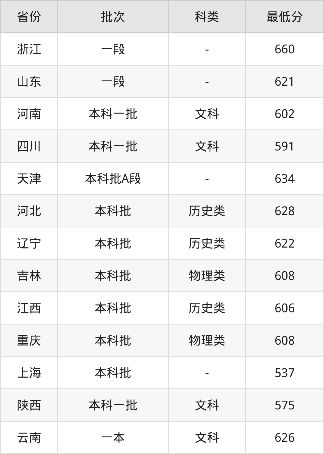 2024年中国人民公安大学法学专业在市外招生分数线各不相同,具体如下: