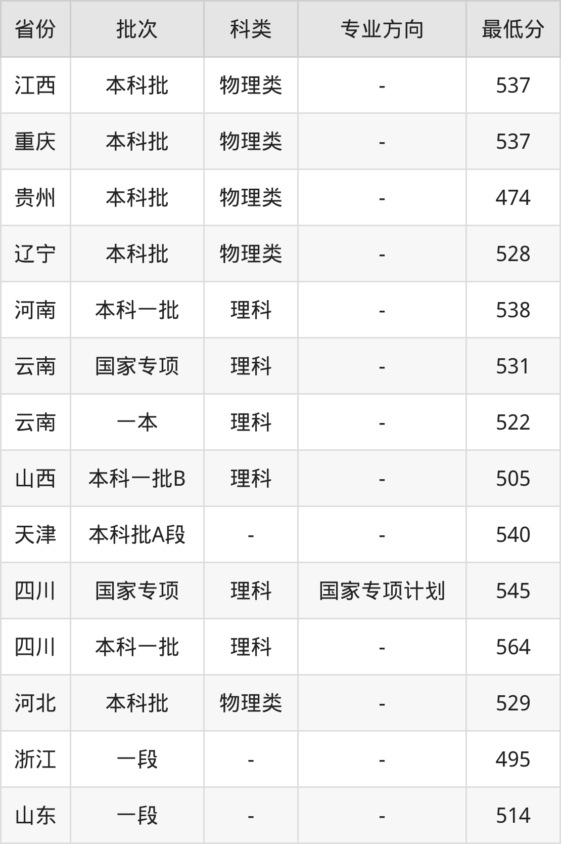 理科545分(国家专项计划、位次76347名),理科564分(位次55901名)。