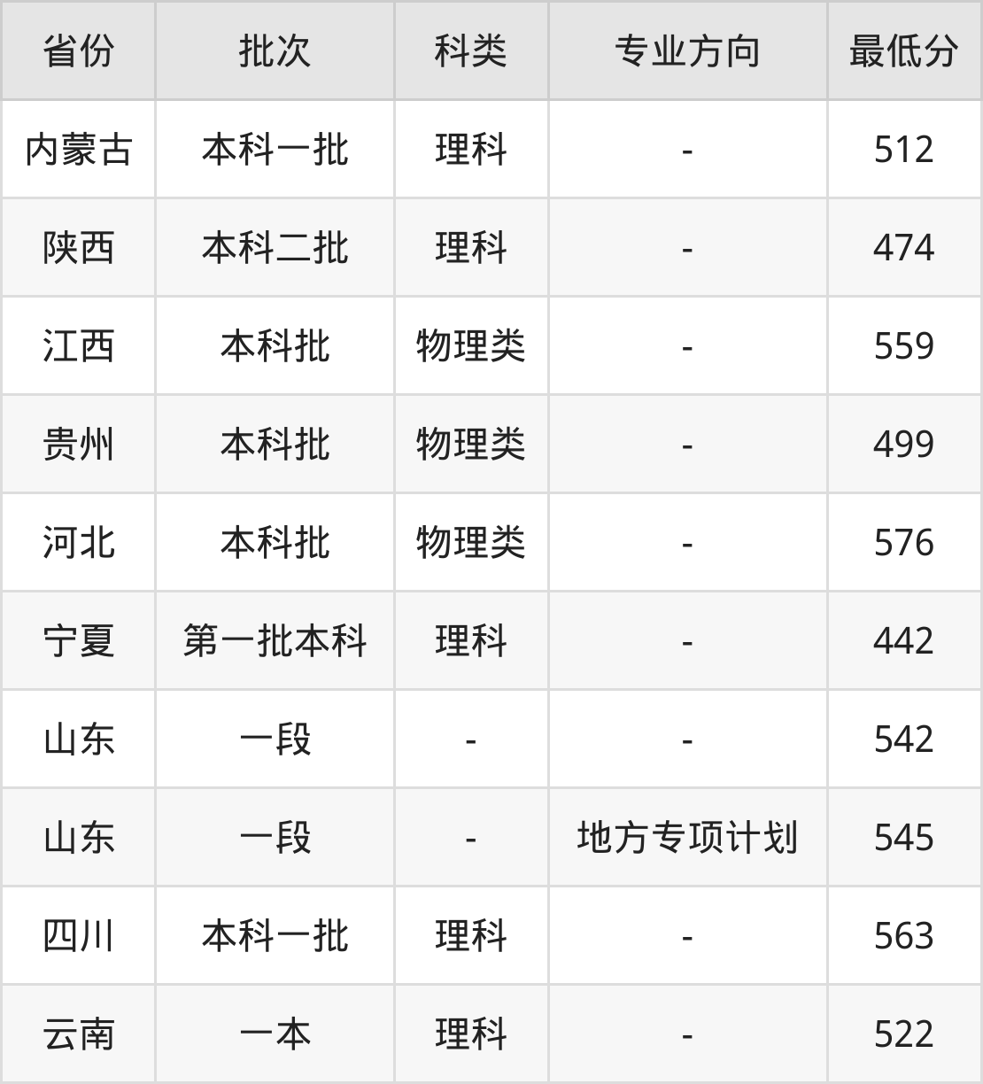 | 批次 | 专业方向 | 最低分 | 位次 |
