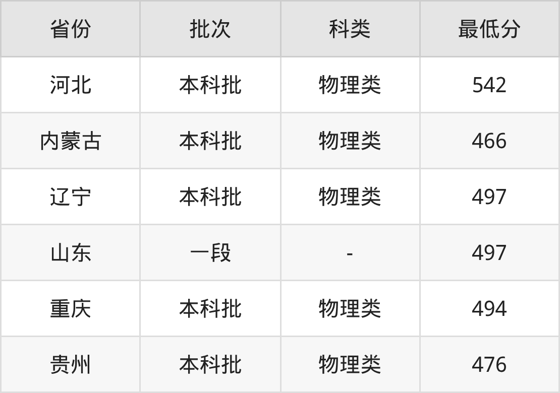 | 批次 | 科类 | 最低分 | 位次 |