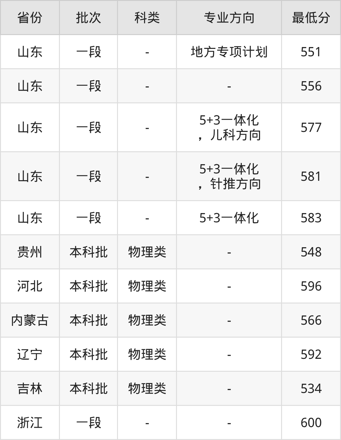 2025年山东中医药大学中医学专业在省外招生分数线各不相同,具体如下: