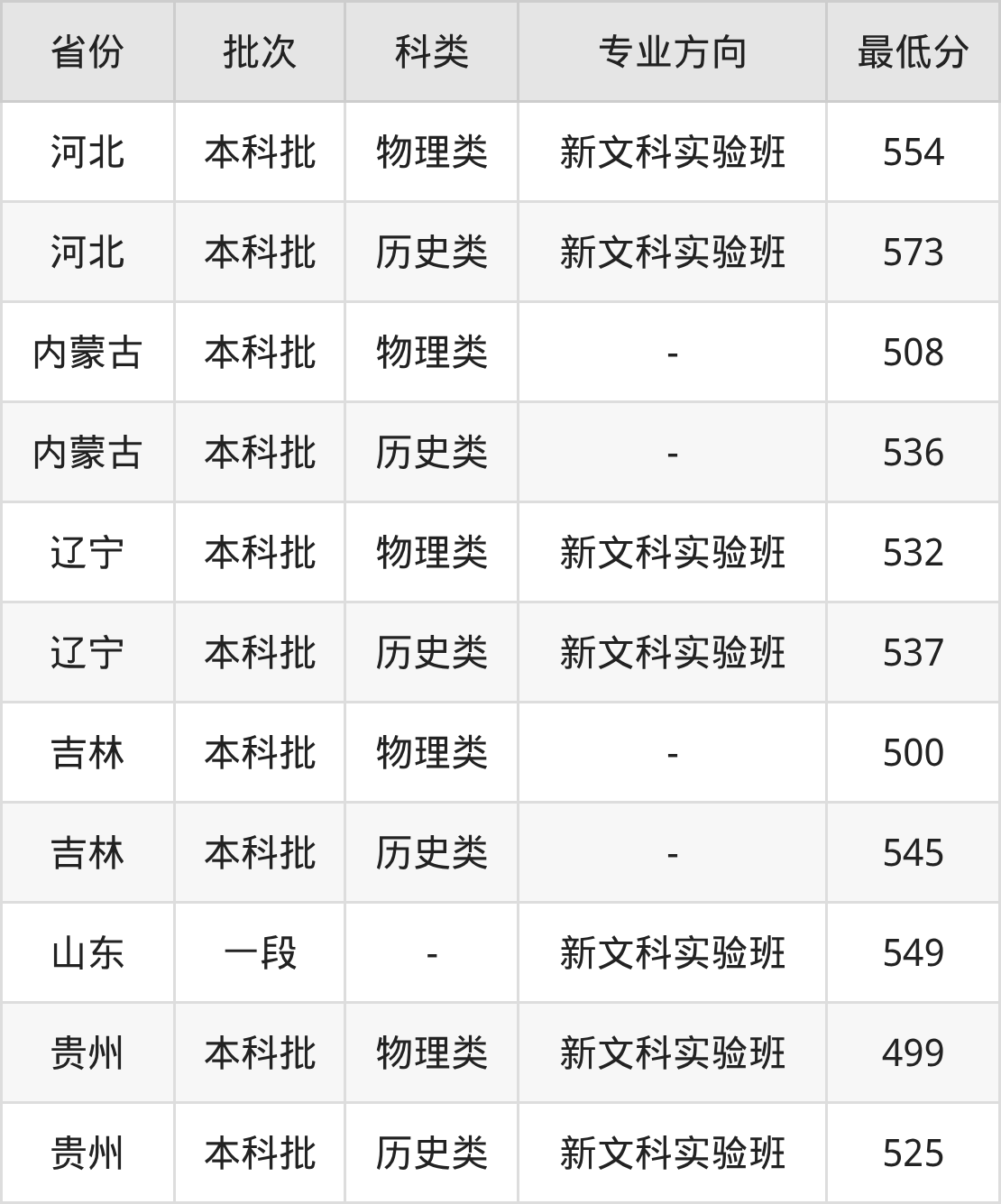 | 本科批 | 历史类 | 新文科实验班 | 537 | 8817 |