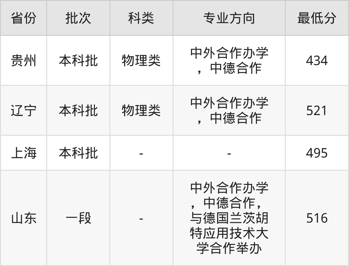 516分(中外合作办学,中德合作,与德国兰茨胡特应用技术大学合作举办、位次141018名);