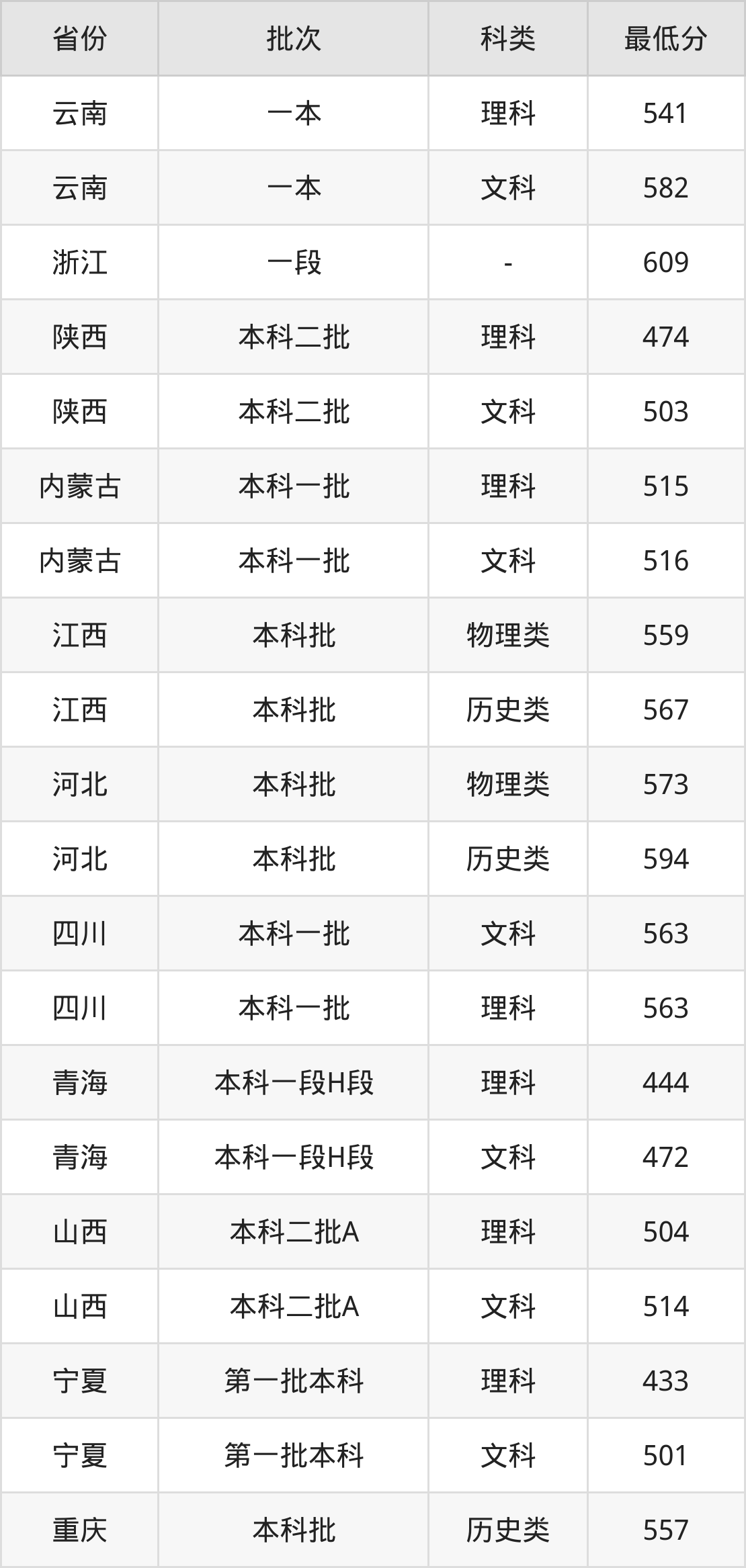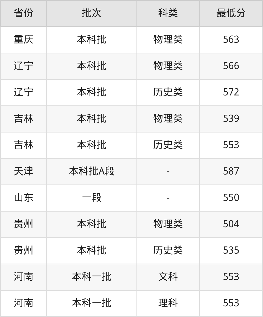 | 批次 | 最低分 | 位次 |