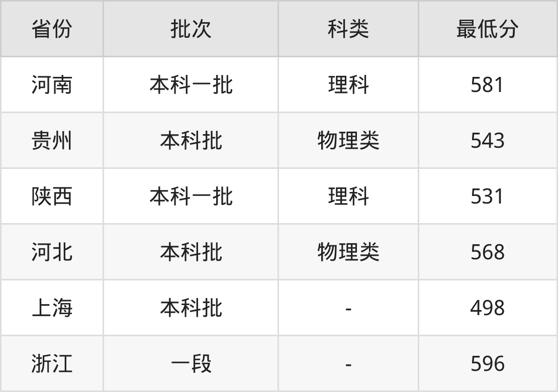 | 批次 | 最低分 | 位次 |