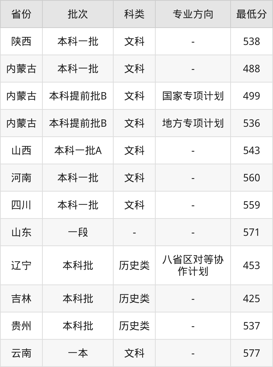 | 本科提前批B | 文科 | 地方专项计划 | 536 | 2449 |