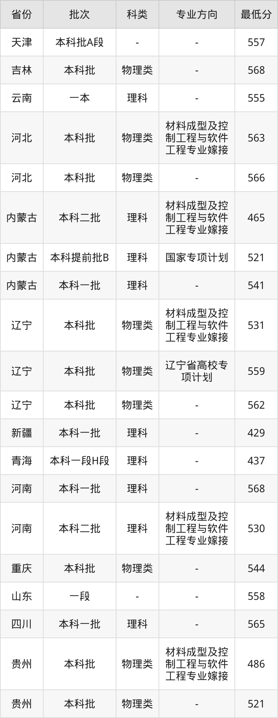 | 本科批 | 物理类 | 材料成型及控 制工程与软件 工程专业嫁接 | 531 | 39383 |