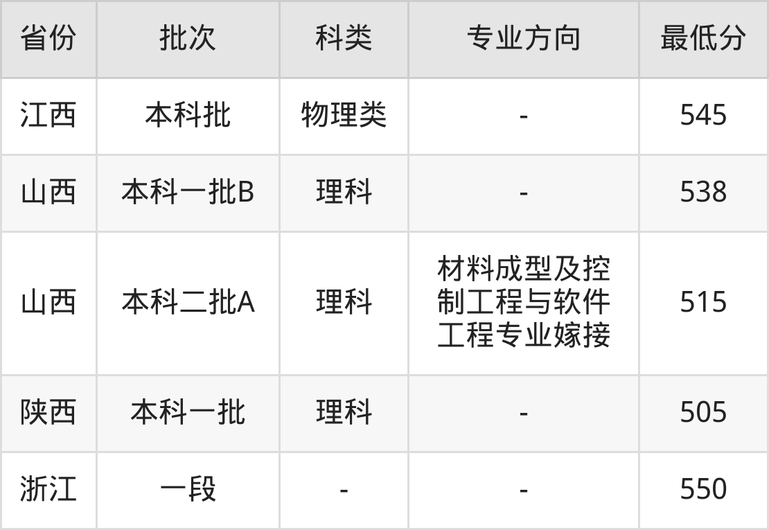 理科538分(位次28447名),理科515分(材料成型及控制工程与软件工程专业嫁接、位次39381名);