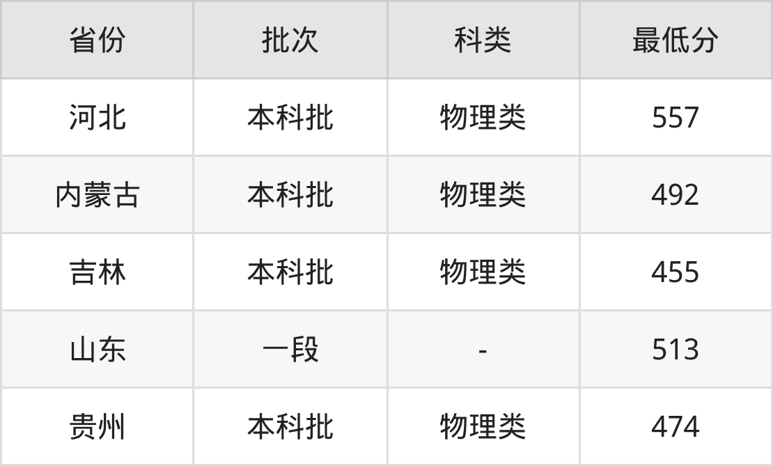 | 批次 | 科类 | 最低分 | 位次 |