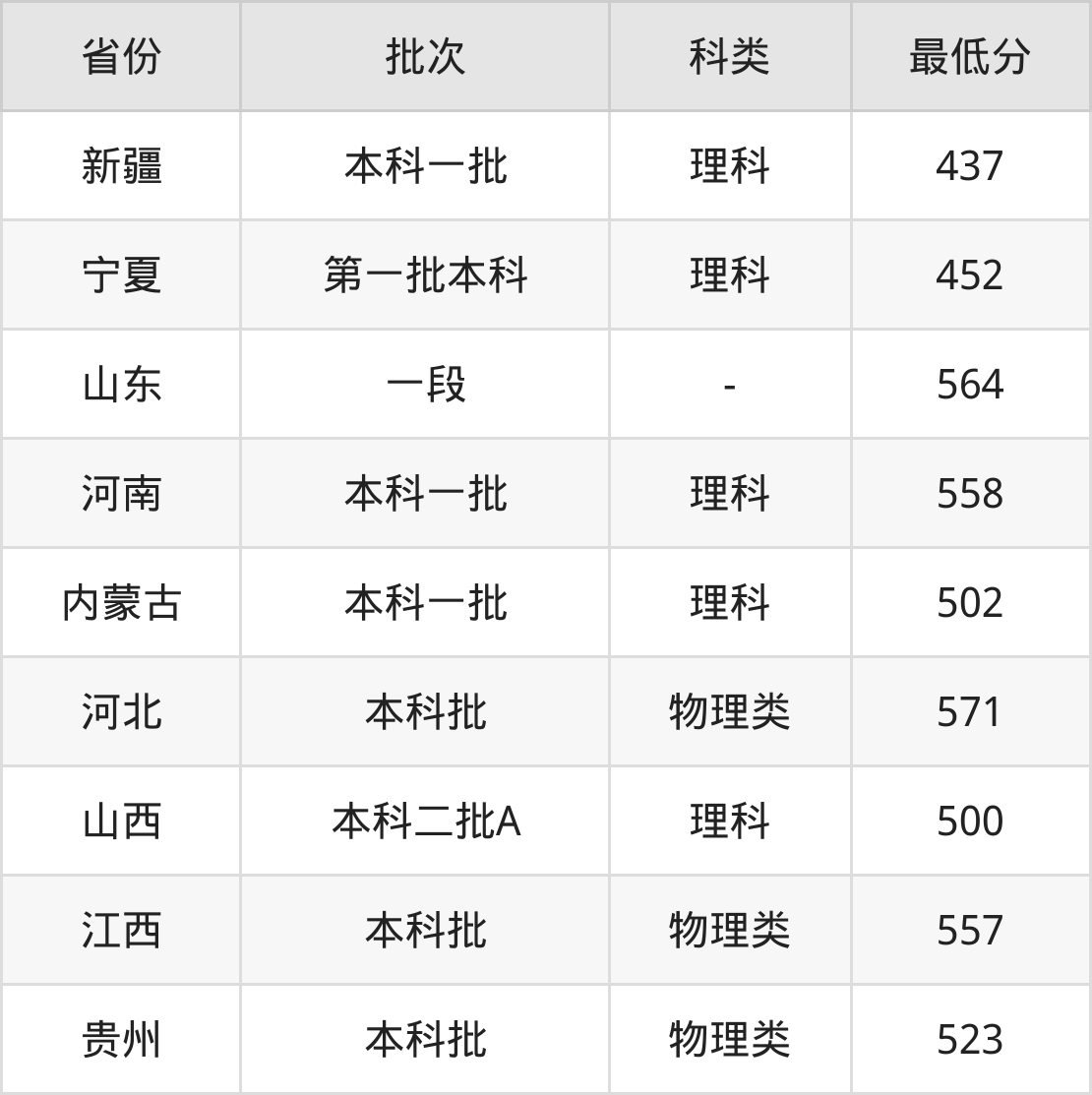 | 物理+化学 | 山东、广西、安徽、河 北、福建、江西、湖北 、湖南、广东、贵州、 北京、甘肃 |