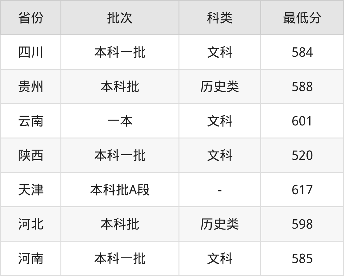 西北政法大学编辑出版学专业录取分数线2024各省汇总显示,省内招生最低分为520分,省外招生最低分为四川584分、贵州588分、云南601分、天津617分等。更多专业分数详情、选科要求、专业简介等均可在正文查阅。