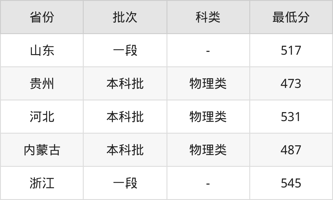 | 批次 | 最低分 | 位次 |