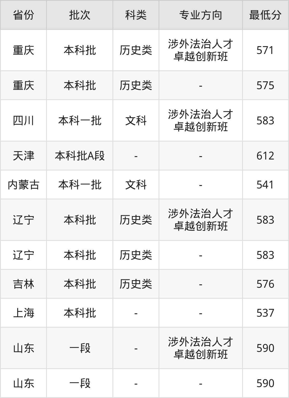 历史类571分(涉外法治人才卓越创新班、位次3667名),历史类575分(位次3293名);