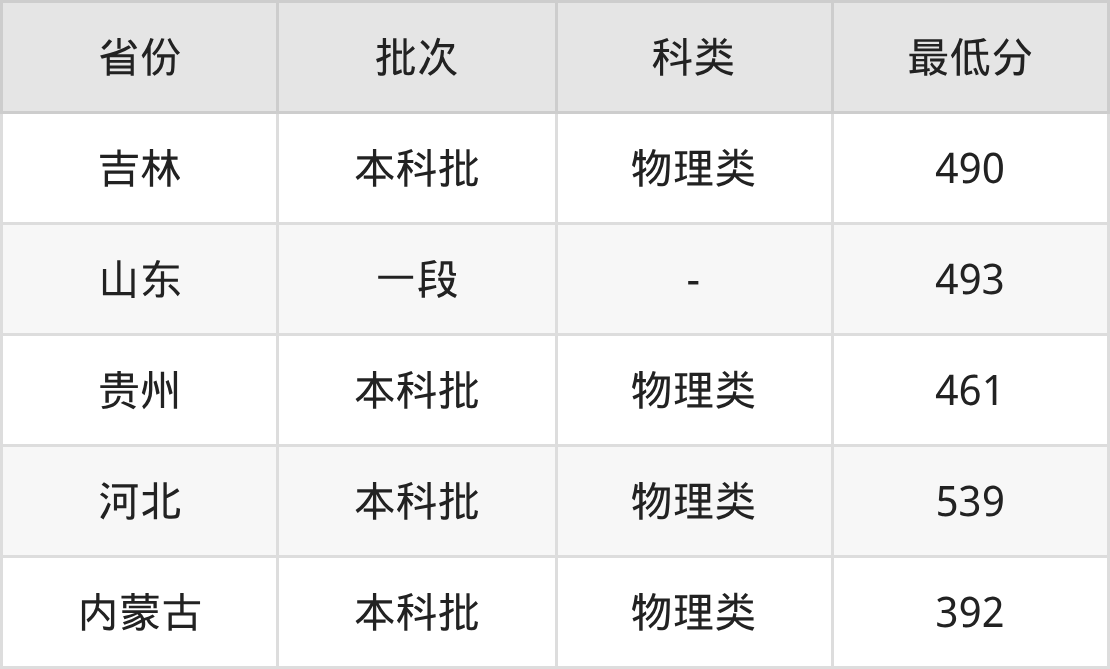 | 批次 | 科类 | 最低分 | 位次 |