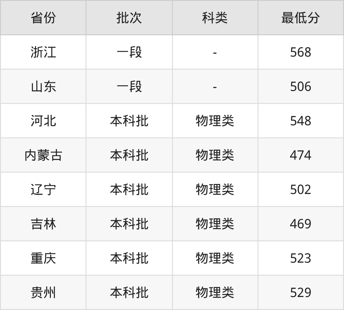 江西理工大学智能建造专业录取分数线2025各省汇总显示,省外招生最低分为贵州529分、河北548分、内蒙古474分、辽宁502分等。更多专业分数详情、选科要求、专业简介等均可在正文查阅。