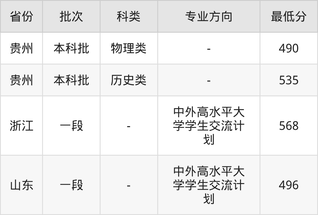 496分(中外高水平大学学生交流计划、位次196479名);