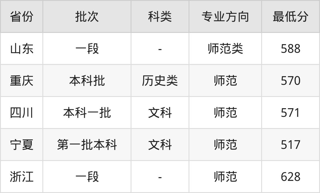2024年浙江师范大学英语专业在省外招生分数线各不相同,具体如下: