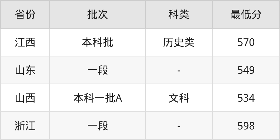 | 批次 | 科类 | 最低分 | 位次 |